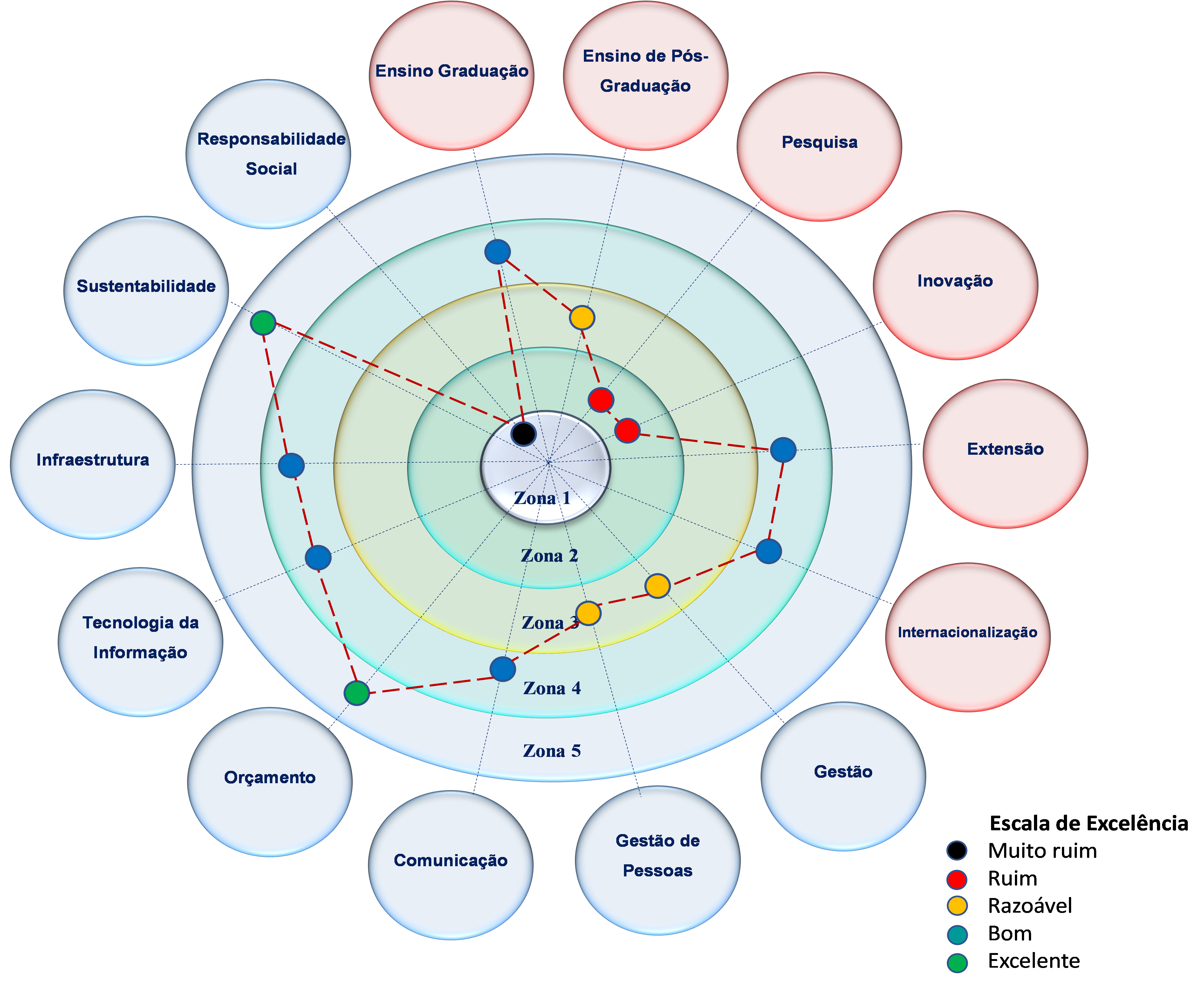 A metodologia de Autodiagnostico Organizacional, tenciona auxiliar às Unidades da UFPA na elaboração de um planejamento mais efetivo e consequentemente a tomada de decisão, a partir de sobre seus pontos positivos em seus processos de gestão, bem como dos pontos críticos que impedem o alcance da excelência na gestão universitária, demonstrado por meio de um gráfico de radar.